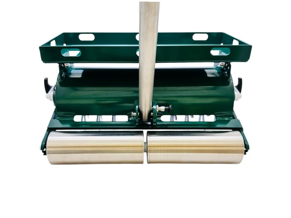 - Půlený transportní válec: Pro snadné otáčení bez poškození trávníku.