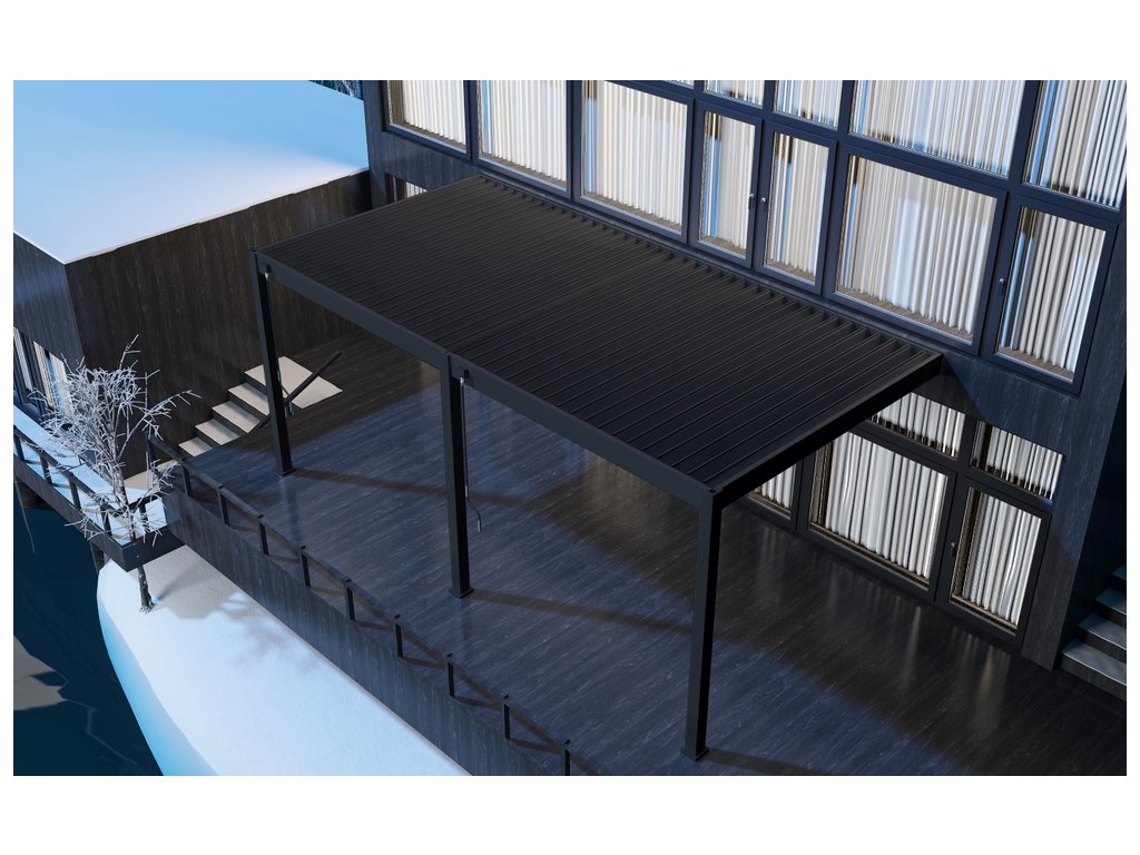 Velmi pevná a stabilní konstrukce v antracitové barvě RAL 7016, v matné povrchové úpravě se hodí do každého prostoru. Pergola je vyrobena z vysoce kvalitního hliníku, který je ošetřen práškovou barvou, což zaručuje odolnost vůči povětrnostním vlivům.