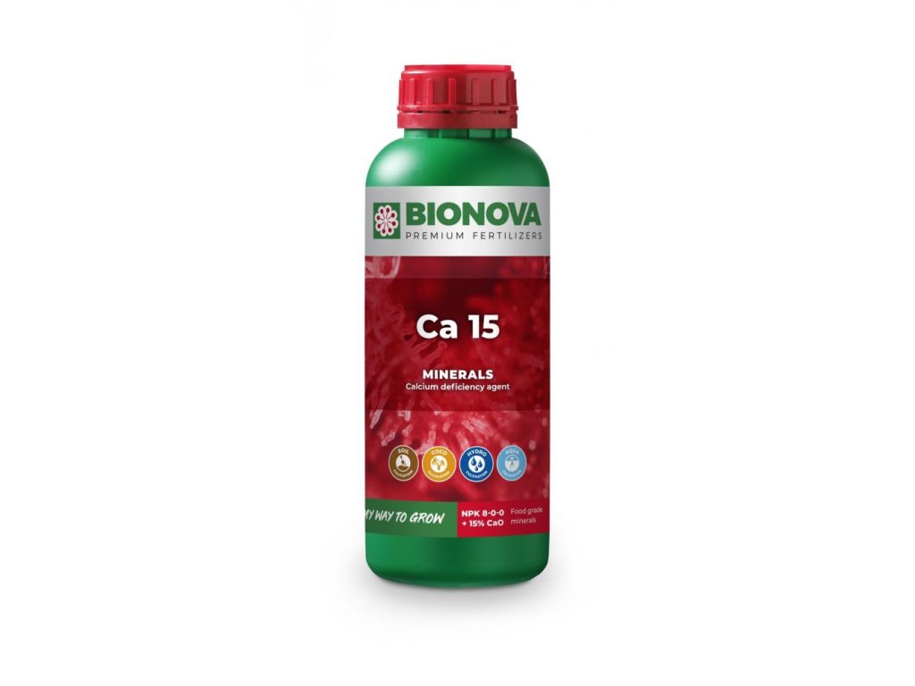 BioNova Ca 15 je univerzální přísada, která obsahuje 15% (180 g/l) čistého vápníku, 8% dusíku a stopové prvky železa, mědi a manganu. Rychle vstřebatelná přísada neucpává zavlažovací systémy a nemění hodnotu pH. Minerání hnojivo používejte pouze při nedostatku vápníku.