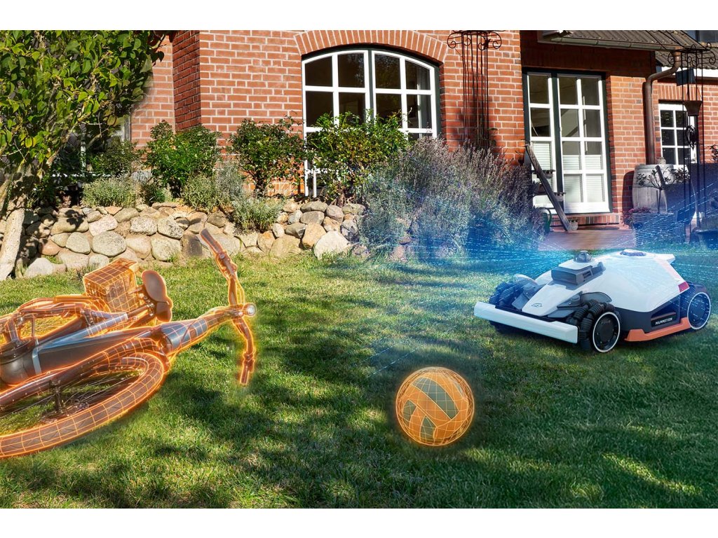 Vytváří 3D mapu zahrady s vysokou hustotou bodů a dokonale rozpoznává prostředí zahrady v reálném čase a umožňuje inteligentní plánování trasy sečení. Pohon všech kol si snadno poradí se sklonem svahu až 80% (38°). Přední odpružená kola překonají překážky na trávníku do velikosti 50 mm.