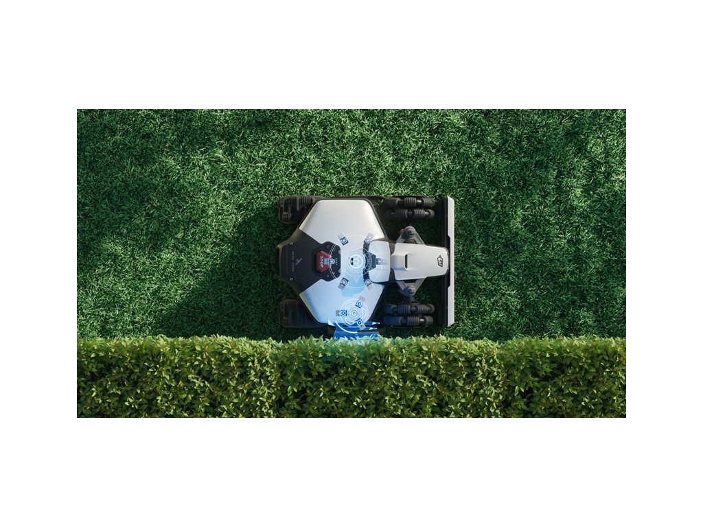 Vytváří 3D mapu zahrady s vysokou hustotou bodů a dokonale rozpoznává prostředí zahrady v reálném čase a umožňuje inteligentní plánování trasy sečení. Pohon všech kol si snadno poradí se sklonem svahu až 80% (38°). Přední odpružená kola překonají překážky na trávníku do velikosti 45 mm.