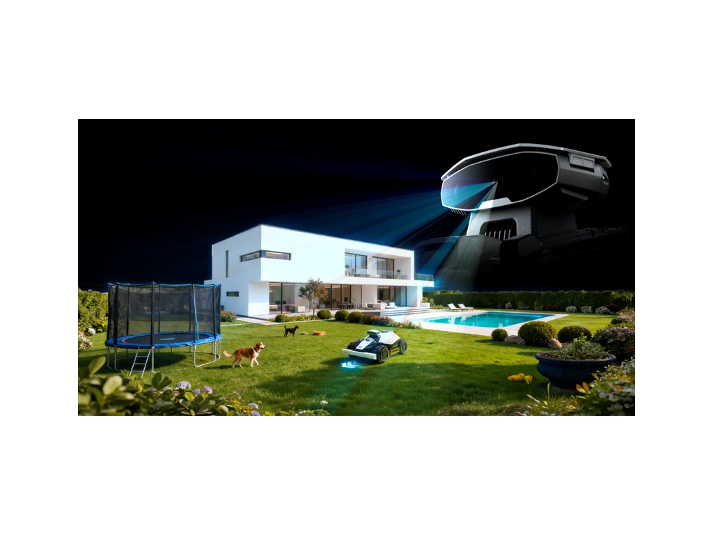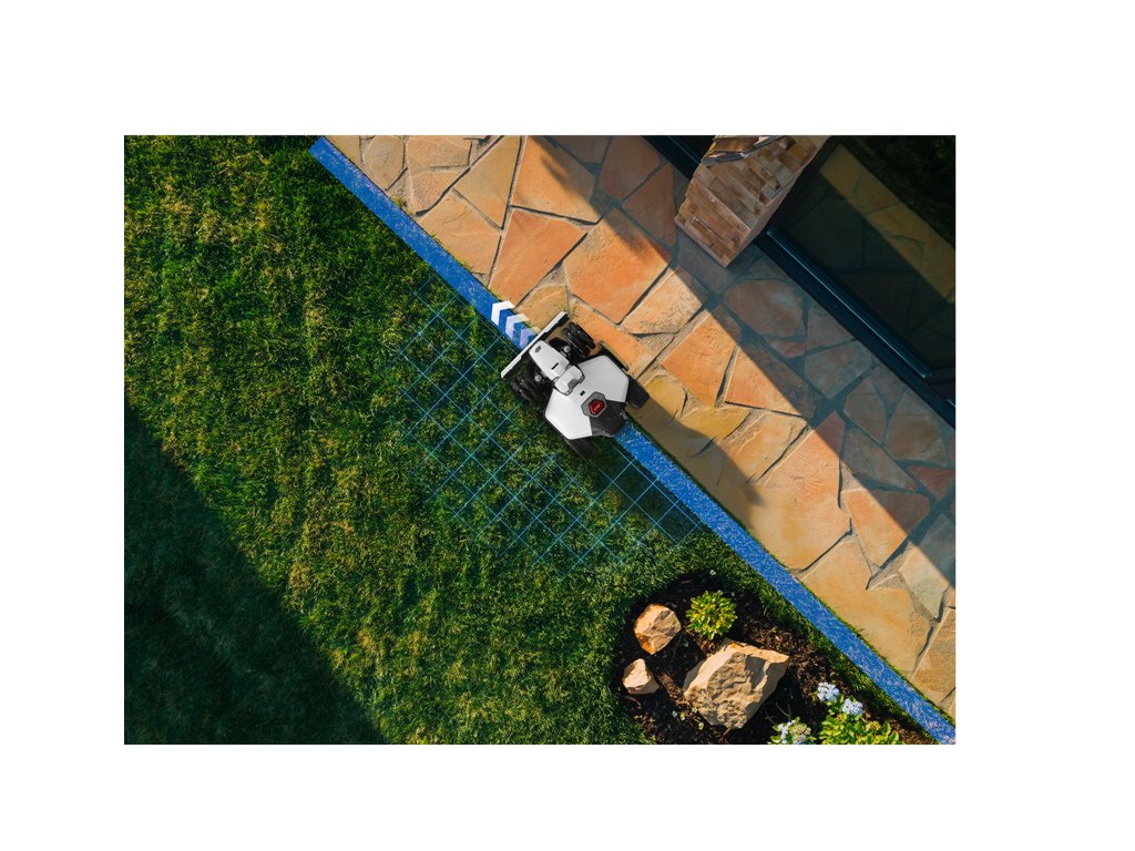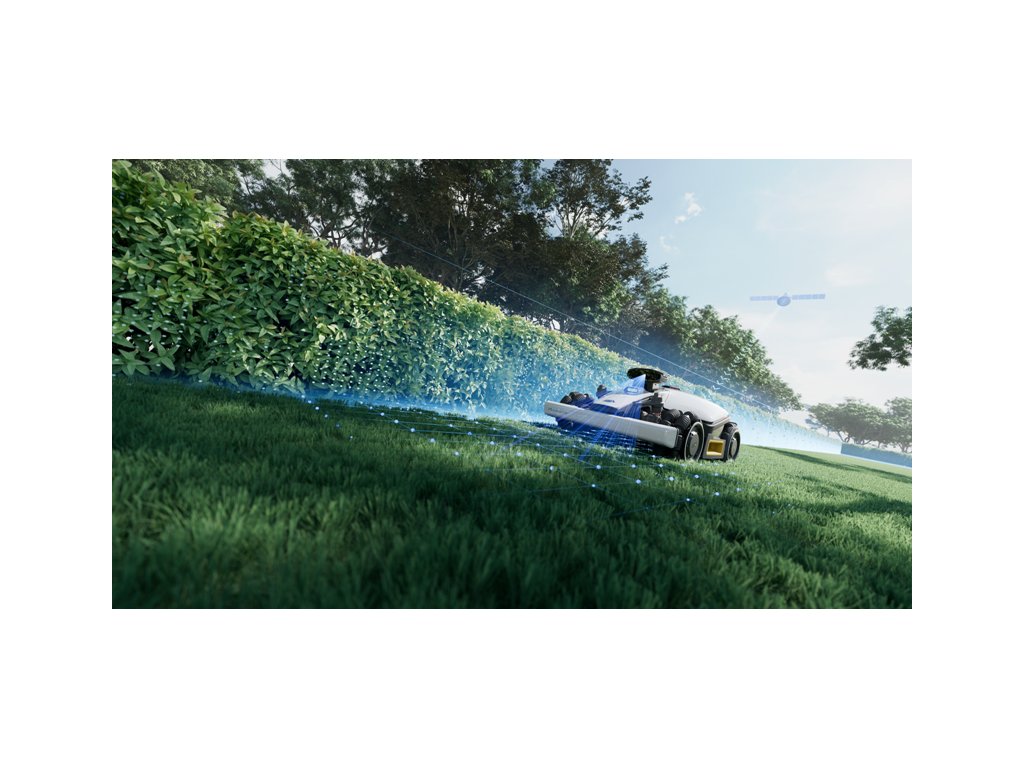Vytváří 3D mapu zahrady s vysokou hustotou bodů a dokonale rozpoznává prostředí zahrady v reálném čase a umožňuje inteligentní plánování trasy sečení. Pohon všech kol si snadno poradí se sklonem svahu až 80% (38°). Přední odpružená kola překonají překážky na trávníku do velikosti 45 mm.