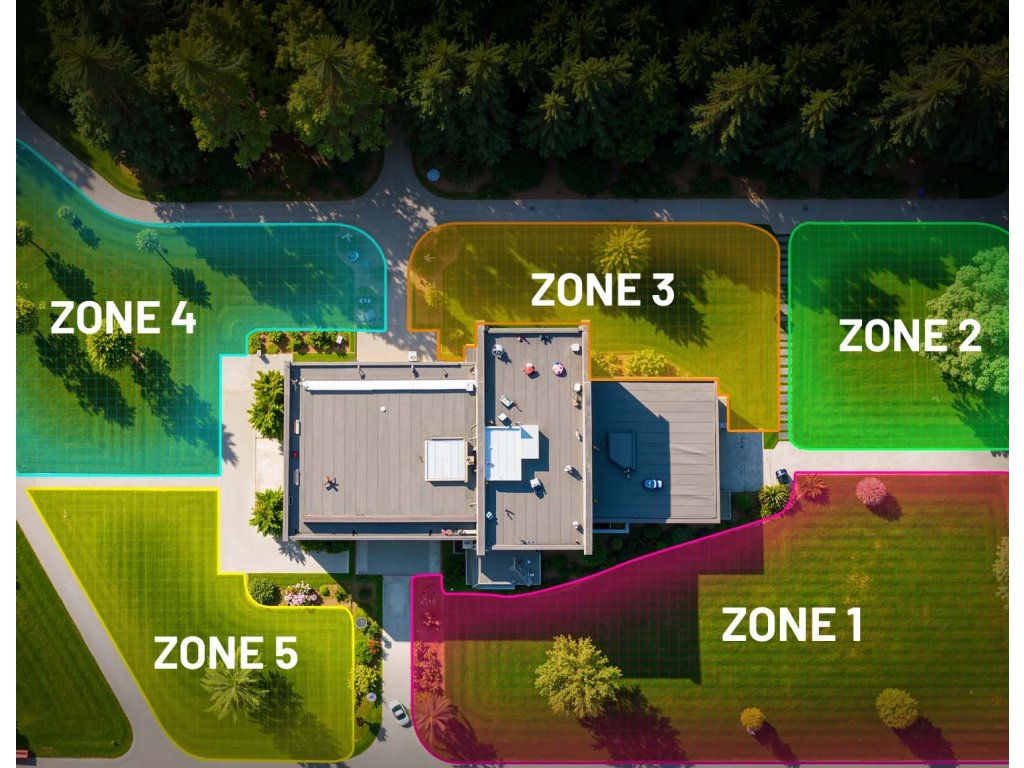 - Až 5 oblastí sečení trávy