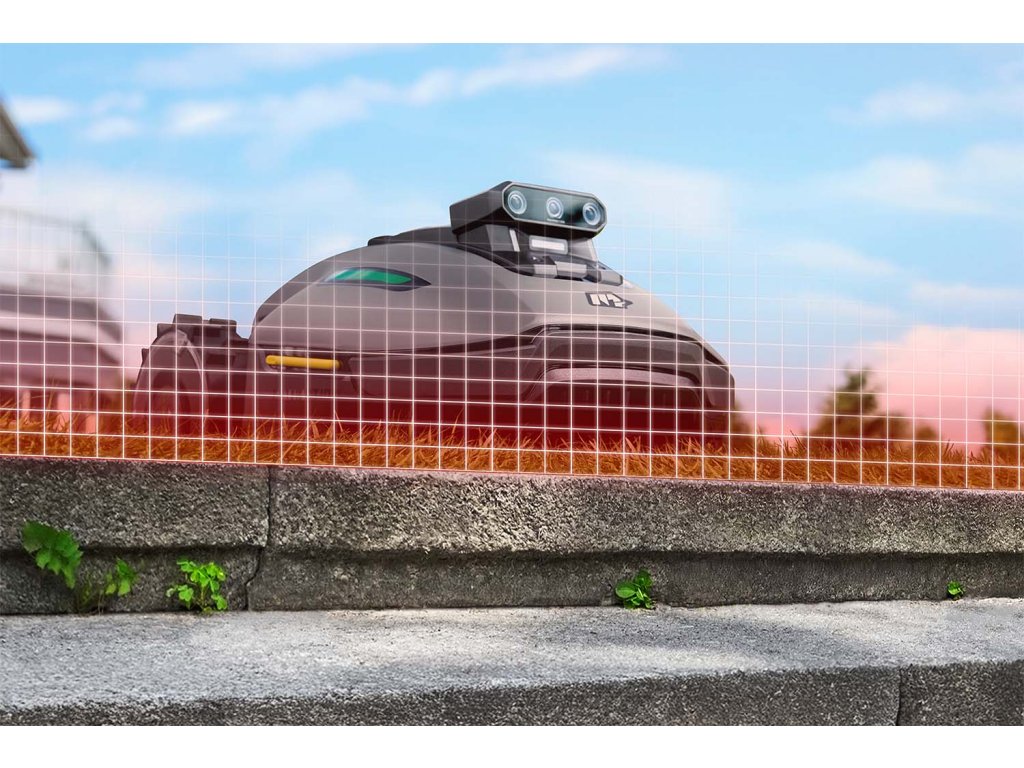 Vytváří 3D mapu zahrady s vysokou hustotou bodů a dokonale rozpoznává prostředí zahrady v reálném čase a umožňuje inteligentní plánování trasy sečení.